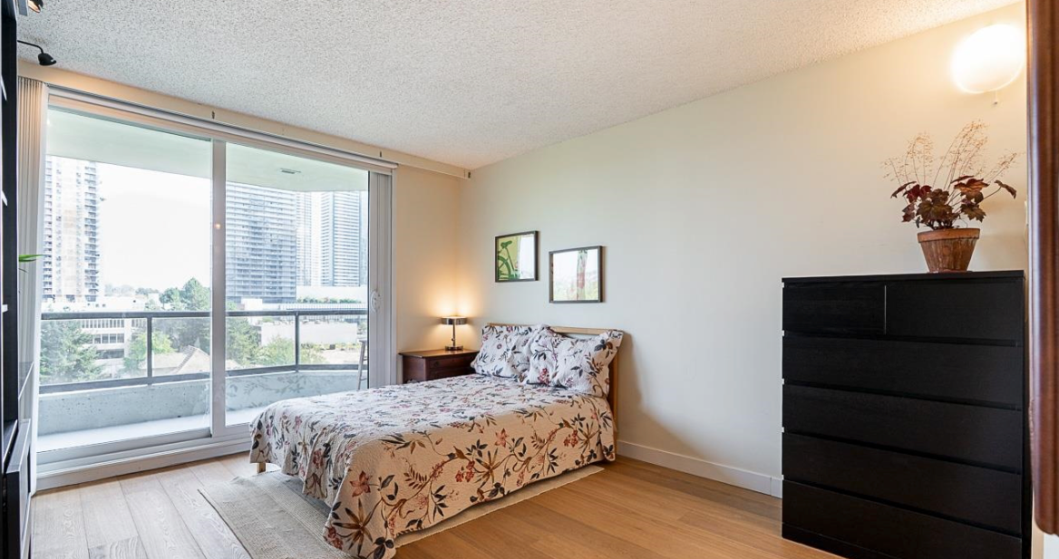 This huge and bright 1 bedroom + den home sits on the 8th floor of a quiet, well-kept concrete building. The open layout features a stylish kitchen with den perfect for storage.Residents enjoy access to great amenities including a social room, tennis court, basketball net, and community garden. Secure underground parking and storage locker add extra convenience.Located just 2 blocks from Brentwood Skytrain Station, Amazing Brentwood Centre, and parks—everything you need is close at hand.